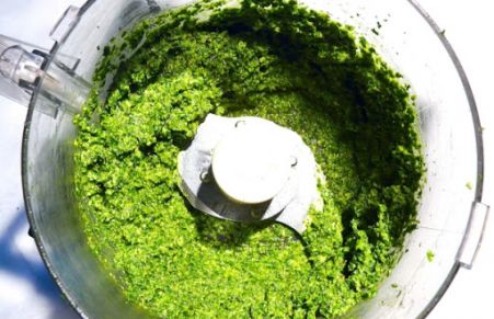 Growing radishes? Here's a great use for the little radish sprouts that have to be pulled when 'Thinning' make this homemade pesto that is perfect over pasta, chicken or even as a dip for veggies!