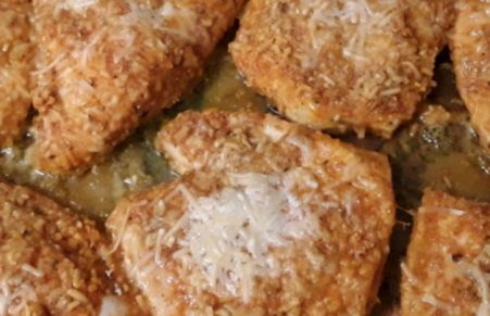 Chicken breasts breaded with a Parmesan and paprika coating is baked until golden and crispy. This unique combination of ingredients makes a fantastic dish that all your family will love!