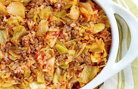 Easy to make beef and cabbage casserole is a perfect weeknight dinner. Serve with some Monterey Jack cheese to sprinkle on top.