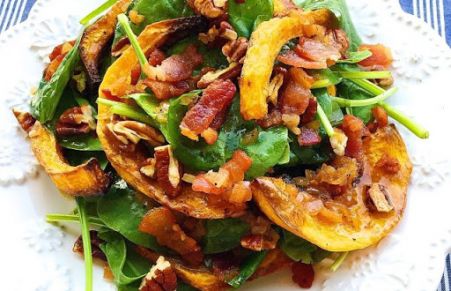 A crispy butternut squash and spinach salad sounds great, but adding to the mix a bacon shallot vinaigrette makes it even better!