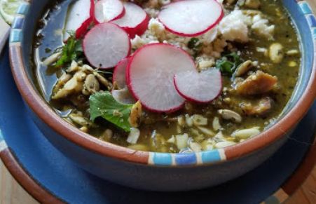 Green chiles make this Paleo pork stew flavorful and add a little zip. Serve topped with goat cheese, thin radish slices and some cilantro.