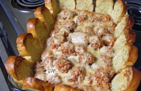 Game day favorite! Easy peasy recipe using frozen meatballs, store bought sauce, three cheeses, and French or Italian bread.