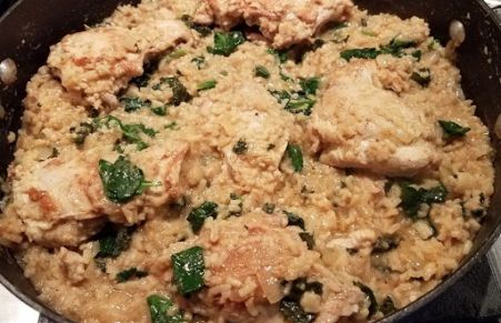 This creamy 1 skillet chicken dish was a great hit. The way the rice is glazed with the chicken juices first really adds a depth that was not expected; almost like a risotto (but obviously not). The flavor from the ranch hid the fact there was 'green stuff' and the kids ate it all up.