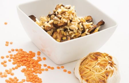 Rice with Roasted Garlic, Lentils, and Mushrooms