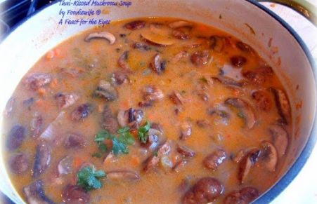 I originally saw recipe for Mushroom Soup on the Pioneer Woman's blog. On a whim, I decided to adapt the recipe with some flavors of Thailand-- coconut, cilantro, lime and red curry paste. The soup turned out to have enough heat to satisfy my need for flavor, and it came together really fast! I'll show you how to make this on my foodblog at http://foodiewife-kitchen.blogspot.com/2010/02/mushroom-soup-gone-thai-inspired-by.html