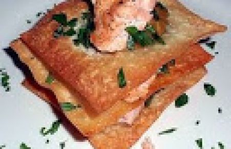 Find all the pictures we have received for this Crispy Wonton and Salmon Napoleon with Parsley-Roasted Garlic Puree recipe.