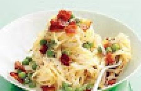 Fresh Angel-Hair Pasta with Bacon and Peas