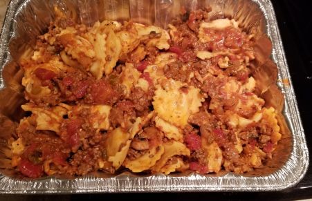 Mouthwatering hearty meat sauce with pasta, mushrooms, sausage, beef and cheese. Serve with a house salad and crusty bread.