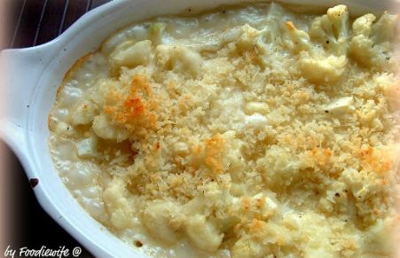 My family loved this dish, which had a nice light garlic-infused sauce and a crunchy panko crumb topping. The low-fat cheese that I recommend might take a little searching to find (Whole Foods is where I found it). It's a reduced fat cheese that tastes great! I reduced the butter with healthy Omega-3 olive oil and added herbs and aromatics, which yielded a creamy, flavorful sauce with perfectly cooked cauliflower that was slightly crunchy to the bite-- and not mushy. Nobody will know that this isn't a rich a decadent side dish!