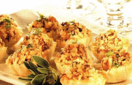Warm, crispy phyllo shells make wonderful containers for a savory filling made up of cheese, Italian sausage and walnuts. These are as perfect for your casual family-night snack as they are “dressed up” for parties.