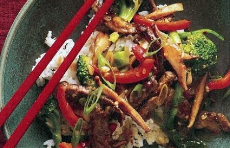 Beef with Broccoli, Bell Pepper and Mushrooms