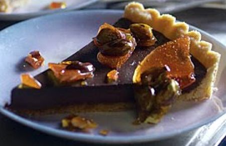 Bittersweet Chocolate Tart with Salted Caramelized Pistachios