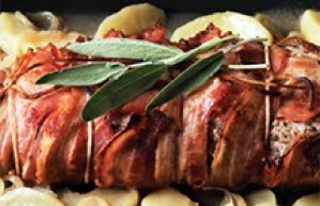 Bacon-Wrapped Pork Loin with Apples & Sage
