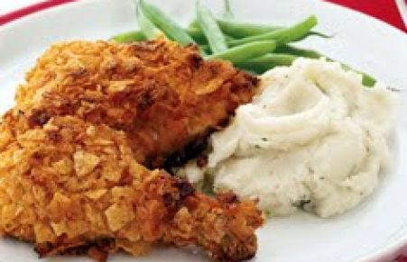When your chips turn to crumbs, use them up in this slightly spicy chicken dinner. Serve with mashed potatoes and green beans.