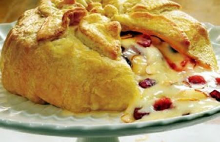 This pastry-wrapped soft cheese, topped with cranberries, apricots and almonds, is great for the holidays but it can also be served year-round.