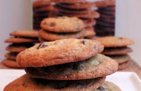 Thin and crispy chocolate chip cookies are the signature treat from Tate's Bake Shop in the Hamptons. This recipe comes from their cookbook. The cookies are buttery and crispy on the outside. Truthfully, they don't have quite the crispy texture of the commercial cookies they bake and ship. I don't have a convection oven, but I'm thinking they would turn out much crispier if I did-- still, these are really good!