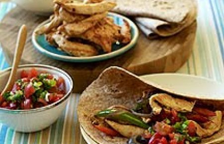 Fajitas are a fun meal — just set out the ingredients and let everyone make their own. We made a fantastic fresh salsa but your favorite jarred salsa is fine, too.