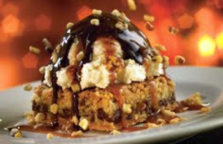 Enjoy Chili's Chocolate Chip Paradise Pie warm with a big scoop of ice cream and top it off with a drizzle of fudge, caramel and walnuts! Yum!
