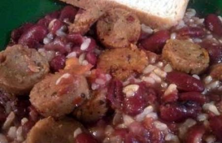 Growing up in New Orleans I was gifted with having Red Beans and Rice every Tuesday for lunch and sometimes even for dinner. Tuesdays have always been the city's day to have Red Beans and Rice as a main course, along with a side of french bread or corn bread. While this famous dish has typically consisted of ham hocks and boudin (Cajun sausage), I have adapted the recipe to a vegan menu, keeping all of the rich flavors while also substituting a grain-based sausage that even my Grandmother would love! High in natural plant proteins and rich in complex flavors, this easy to make classic can be cooked on the stove top or in a crock pot and can be frozen for easy reheating throughout the week.
