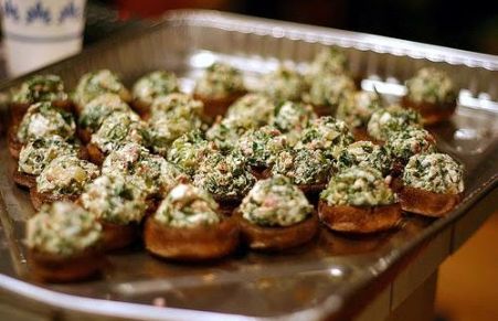 Rich and decadent, these are a surefire way to please a crowd. Use mushrooms that are slightly larger than bite-size because they will shrink a little when cooked. The mushrooms can be prepared the day before and then baked prior to serving.