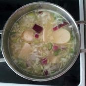 - 3 medium leeks (including 2/3 of green part, well rinsed. Cut each leek into 1/4's and then cut into 1/2-in pieces and well rinsed