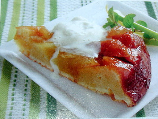 Peel, core and thinly slice the apples and arrange in a circular overlapping pattern on the caramel.