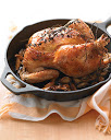 Roast, basting occasionally with juices and stirring garlic, until an instant-read thermometer inserted in thickest part of a thigh (avoiding bone) registers 165 degrees, 45 to 60 minutes. Transfer to a platter, and let rest 10 minutes. Carve chicken, and serve with garlic and pan juices.