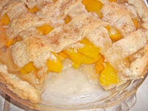 Step 3.) Spoon the peaches on top of the bottom crust. Pour on a little juice to your liking. 1/2 cup will do just fine for me.