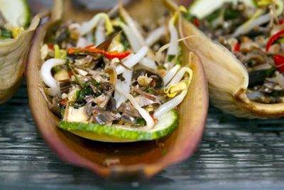 A traditional Malaysian herbed salad using the flower bud of Banana Tree.