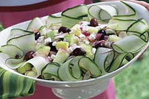 SPOON cucumber mixture onto center of platter; surround with cucumber ribbons.
