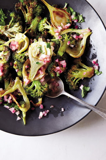 To make salad: In a large bowl, toss the broccoli with 2 tablespoons of the oil. Put the fennel in a small bowl and toss with the remaining 1 tablespoon oil. Season both with salt and pepper and spread on separate baking sheets. Roast the broccoli until lightly browned and tender, 15 to 20 minutes. Roast the fennel until tender, 20 to 25 minutes. Remove from oven.