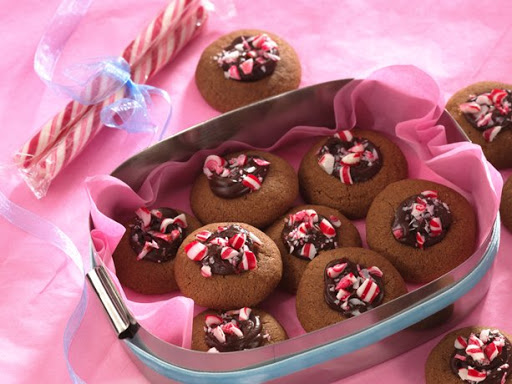 5 Spoon rounded 1/2 teaspoon filling into indentation in each cookie. Top each cookie with 1/4 teaspoon crushed candies