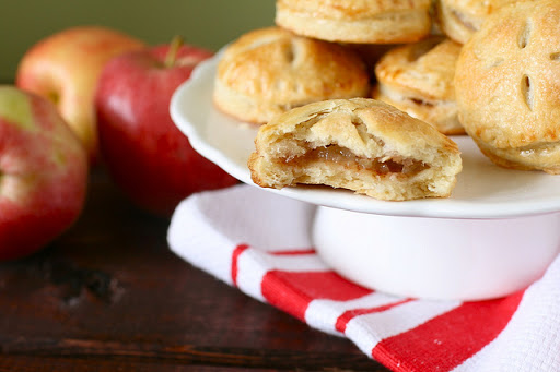 top of a round of pie dough. Layer a second round of dough on top of each apple slice and gently press the