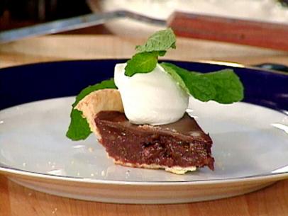 Place half of the chopped bittersweet chocolate in a small bowl. Place the remaining bittersweet chocolate and the oil in the top of a double boiler, or in a small metal bowl set over a pot of simmering water. Heat the chocolate, whisking, until melted. Pour the melted chocolate over the chocolate in the bowl, whisking to melt. Pour over the warm pie, spreading to the edges to coat the top. Refrigerate until well chilled, at least 2 hours.