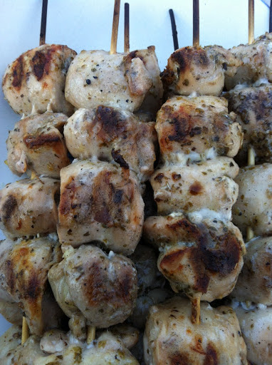 4. Grill skewers, turning occassionally until chicken is cooked through 12-14 minutes