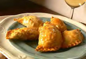 Continue making little triangle empanadas with the rest of the dough, 16 total. Place the triangles on a parchment-lined baking sheet and into the preheated oven. Bake the empanadas until golden, about 10 to 12 minutes. Meanwhile, in a shallow bowl, mix together the sugar, cinnamon, and pinch of salt. While still warm, brush the empanadas with melted butter, and then gently toss in the cinnamon-sugar mixture. Serve the empanadas with tangy plain yogurt for dipping.