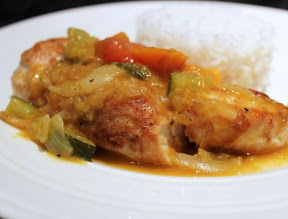 Cuando el curry este listo, calentar un poco de aceite en una sartén. Freír las pechugas de pollo durante 3 minutos a cada lado y acabar con ellas en el horno durante 4 minutos o hasta que estén cocidas.