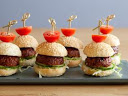 For the sliders: Layer the bottom of the buns with shredded lettuce and a couple cucumber slices. Cut the meatballs in half and place half the meatball, cut-side down, on the bottom bun. Add the top bun. Skewer half a cherry tomato with a sandwich pick and insert into the slider to hold it together. Repeat with the remaining sandwiches.