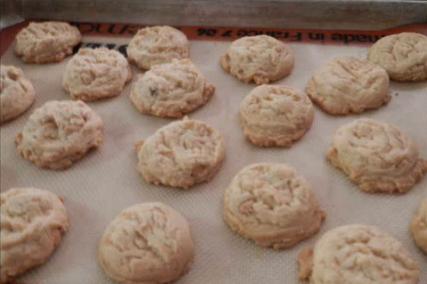 Preheat oven to 350 degrees. Cream butter and sugar until light and fluffy, 5-8 minutes. Add baking soda and vanilla. Mix well. Add flour, mochiko and chopped nuts, if using; blend well. Drop by rounded teaspoonfuls onto cookie sheet and bake 15 to 20 minutes or until slightly golden.