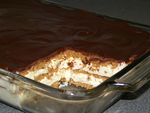 Just a few ingredients and a few minutes needed for this light and refreshing potluck favorite. Made with layers of whole graham crackers and vanilla pudding then topped off with chocolate frosting.