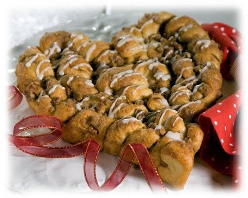 Spray counter lightly with non-stick cooking spray. Roll combined rolls into a 12x9-inch rectangle. Cover with plastic wrap and let rest. Combine remaining ingredients and mix well. Remove wrap and spread sugar mixture evenly over dough. Press mixture into dough with the palms of your hands. Cut into twelve 1-inch strips. Stack 2 strips together and twist several times. Arrange twists in well sprayed 10-inch heart pan. Sprinkle any mixture that may have fallen out when twisting over top. Cover with sprayed plastic wrap and let rise 30- 45 minutes. Remove wrap and bake at 350°F 20-25 minutes. Let cool in pan 5 minutes and then remove to cooling rack. Combine glaze ingredients and drizzle over bread.
