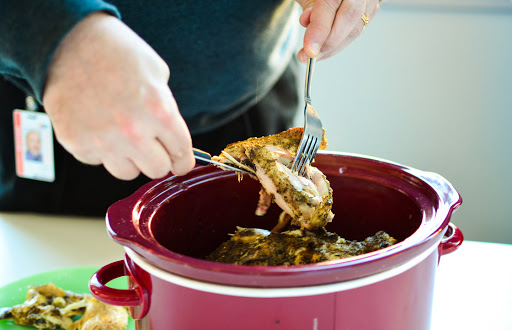 Use a 6-quart slow cooker. Place the chicken into the insert, breast-side down (to ensure moist meat). In a small bowl, combine the remaining ingredients. Rub this spice blend evenly all over the bird, inside and out. Do not add liquid. Cover, and cook on high for 4 hours, or on low for 6 to 7 hours. Retain the pan drippings to make rice or mashed potatoes, if you'd like. Check the temperature with a meat thermometer to ensure the chicken has reached an internal temperature of at least 165 degrees before serving.
