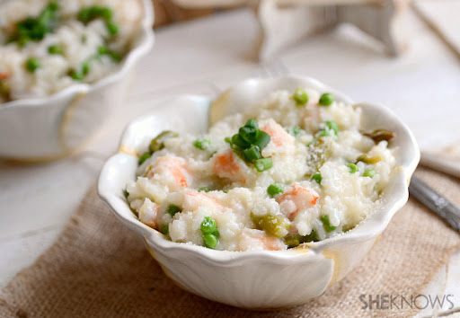 15/05/15 - Added the asparagus and a squeeze of lemon juice for a springtime option. I liked it very much, however Dan wouldn't eat it this way and I had to make him something else so keep that in mind. He'd probably like the peas but then it would basically be risi e bisi so you might as well just make that. I've returned the recipe to its original state.