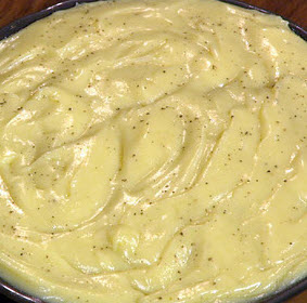 Working in batches, add the potatoes to a food mill. Once all the potatoes are milled, toss in the garlic and the deglazed Vermouth. Stir in about 1 cup olive oil and stir until the mixture is smooth and creamy. Adjust seasoning and serve while still hot.