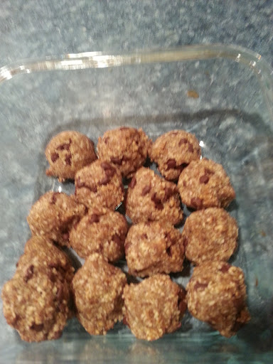 Pick up small handfulls of dough, squeeze tightly into 1-inch balls, and place on cookie sheet.