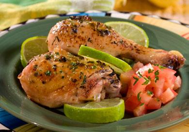 Sprinkle chicken with salt and pepper and place in prepared baking dish. Pour lime mixture over top of chicken, cover, and marinate 20 to 30 minutes in refrigerator.