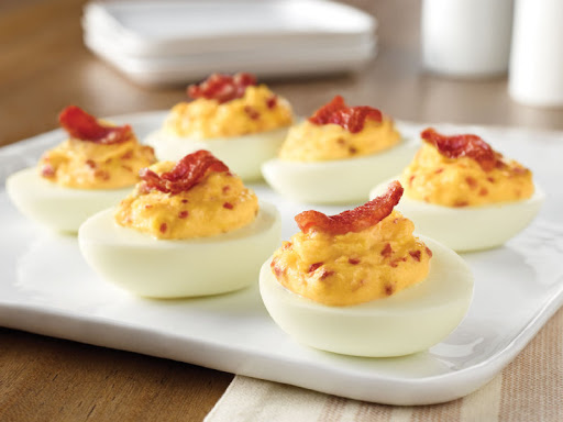 Fill each half egg white with yolk mixture. Cover and refrigerate until ready to serve.