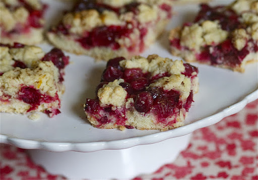 3. In another bowl, stir together the sugar, cornstarch and orange juice. Gently mix in the cranberries, add the cinnamon. Sprinkle the cranberry mixture evenly over the crust. Crumble remaining dough over the berry layer.