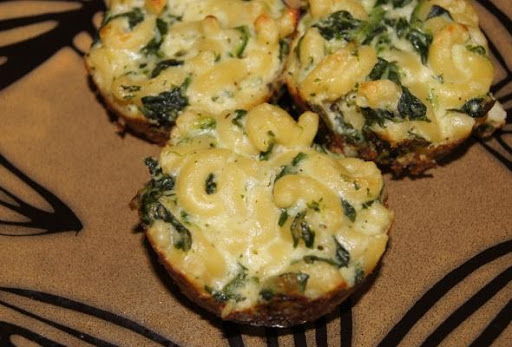 5. In a large bowl, combine the cooked pasta, spinach, cheese sauce, salt, and pepper. Pour the mixture into your cupcake tin evenly.