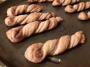 4. Twist each strip gently and bake on a lined cookie sheet until golden, 10 minutes.